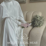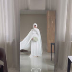 The unique design of AMINA combines modesty and minimalism, ensuring a timeless and refined look for the modest bride. Crafted from crepe, this dress features a flowing silhouette that creates a mesmerizing effect. This one-piece cape dress has a timeless design and ensures utmost comfort.